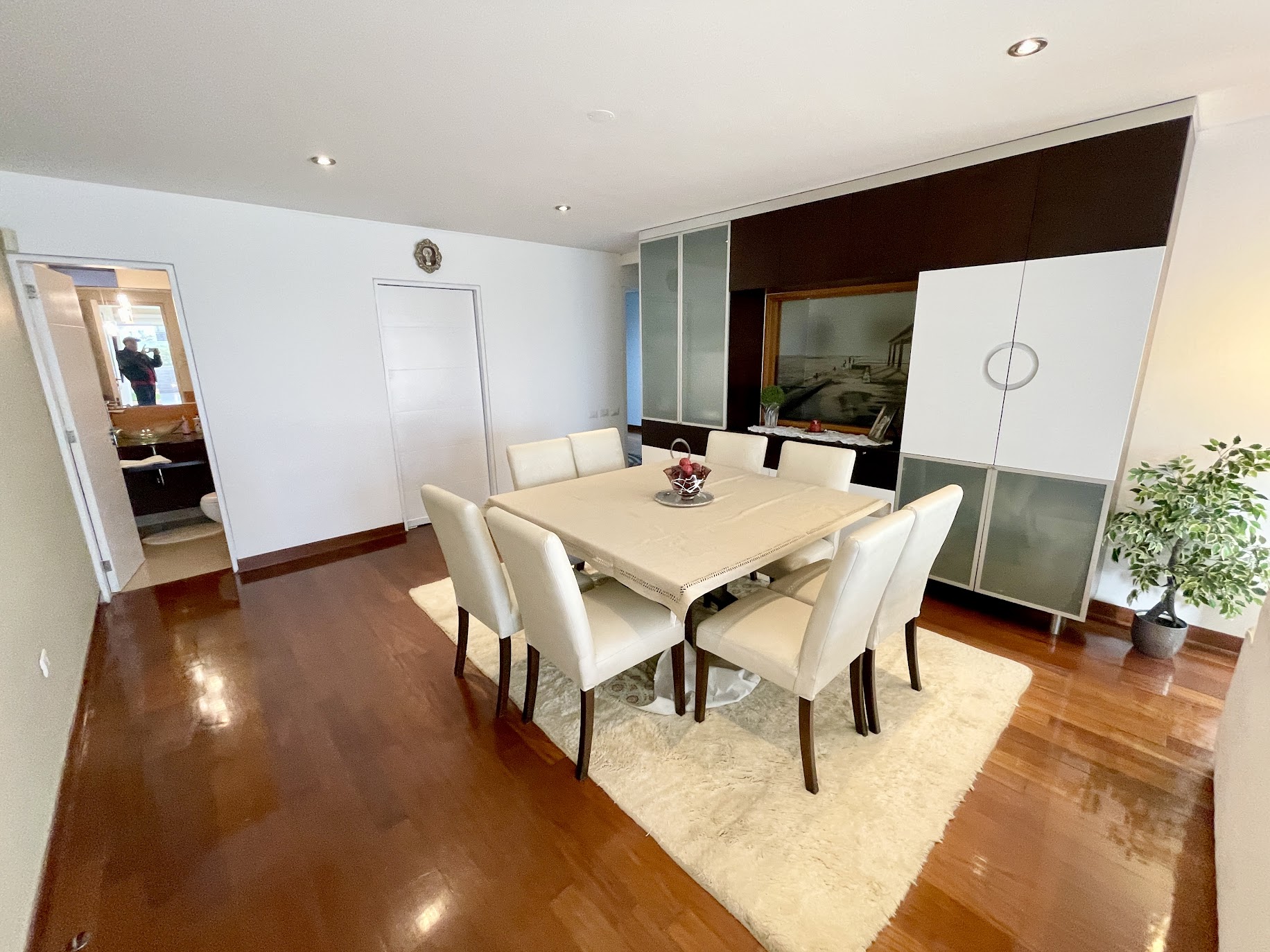 Sala comedor, bastante amplia, finos acabados, pisos de parquet, buena iluminación.